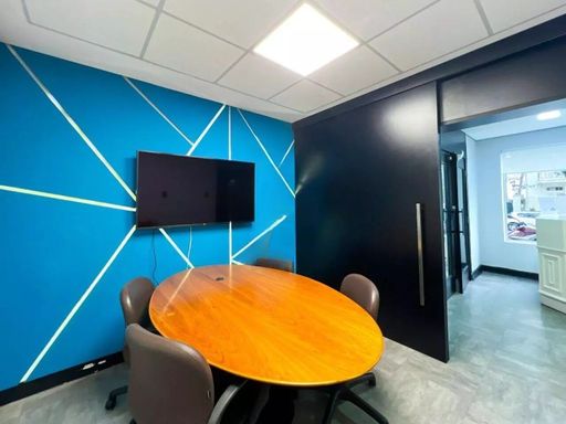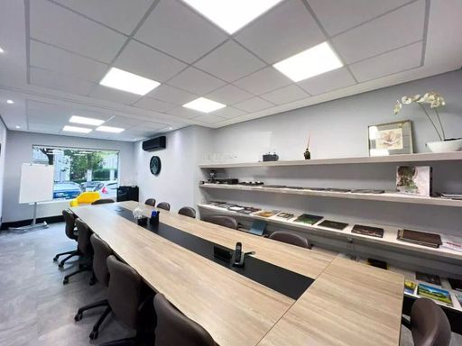 Sala de reunião ampla com vista para rua Estados Unidos;
