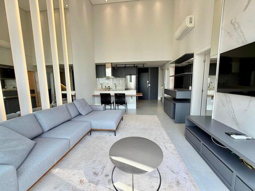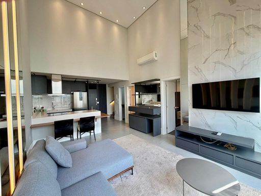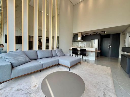 Com 100 m², o imóvel oferece ambientes amplos e integrados, com pé-direito duplo, garantindo excelente iluminação natural e sensação de amplitude.